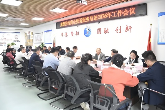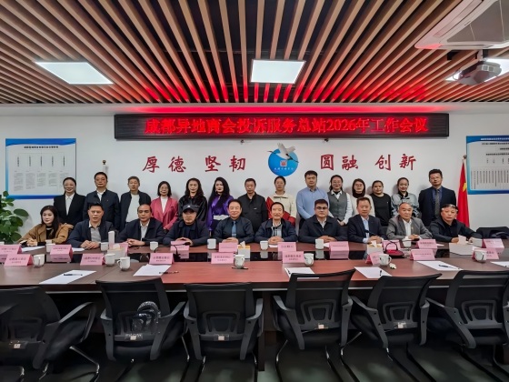成都市中级人民法院、成都市工商联“蓉法护企面对面”系列活动——“共话商会 稳护发展”暨直属商会“依法治会”法治培训活动结束之际。成都异地商会投诉服务总站于4月8日下午召开2026年工作会议,总站成员,各成员商会投诉服务处主任及代表,特邀总站顾问、四川省律政公证处、成都市淮安商会代表共29人参加会议。会议由总站主任苏广华主持。